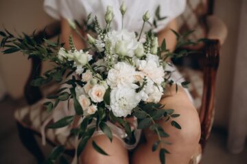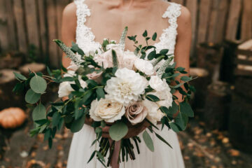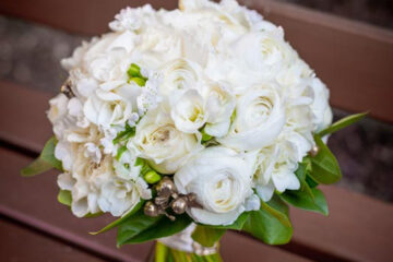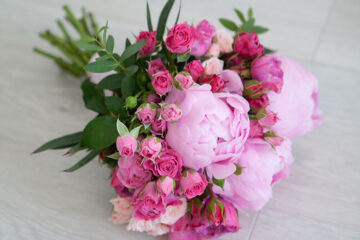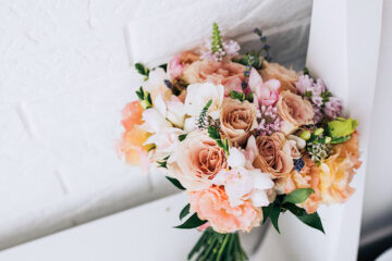 В букете невесты мы тоже использовали нежные пастельные цвета, букет составили из пионовидных и других сортов роз.